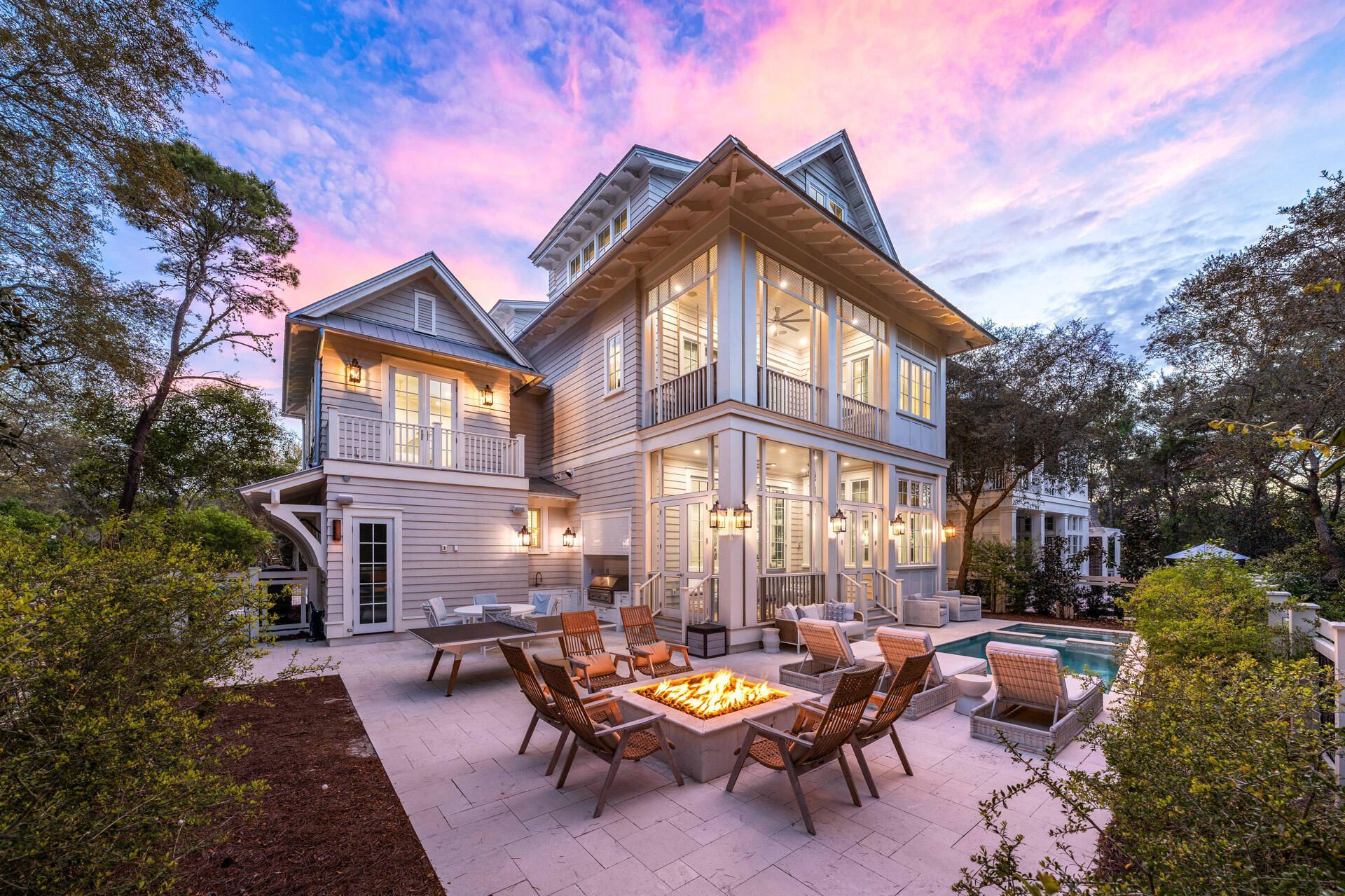 This newly constructed coastal residence in WaterColor's desirable Park District offers refined design, generous living spaces, and seamless indoor-outdoor enjoyment just moments from the Gulf. Completed in 2023 and professionally designed by Katie Grace Designs, this 5-bedroom home features an open-concept main level with a spacious living area, dining for 10, and a chef's kitchen with stainless steel appliances, oversized island seating, and butler's pantry. The first floor also includes a guest suite with private bath, powder room, and a well-equipped laundry room. Thoughtfully curated interiors showcase calming coastal tones, elevated finishes, and abundant natural light throughout. The second level hosts four well-appointed bedrooms, including a luxurious primary suite with soaking tub, steam shower, and private sitting area, along with an additional laundry room for convenience. The third floor is designed for entertainment, featuring a custom bunk room, full bath, and a game room complete with billiards, shuffleboard, and lounge space. A fourth-floor tower provides a unique retreat with seating, wet bar, and scenic views of WaterColor, Seaside, and glimpses of the Gulf. Outdoor living is equally impressive with a screened porch, private pool and spa, fire pit, outdoor kitchen, cabana bath, and ample space for relaxing or entertaining.As a WaterColor property owner, enjoy access to an unmatched collection of resort-style amenities including the WaterColor Beach Club with Gulf-front pools, private beach access, and dining; Camp WaterColor featuring a lazy river, slides, and family pool; multiple neighborhood parks and pools; tennis and pickleball courts; scenic walking and biking trails; Western Lake access for kayaking and paddleboarding; and convenient proximity to the shops and restaurants of Seaside. This exceptional home offers the perfect blend of luxury, comfort, and coastal lifestyle in one of 30A's most sought-after communities.